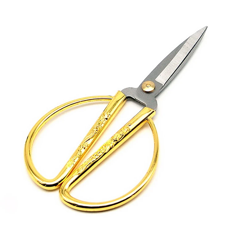 Kéo Rồng Phụng siêu bén cắt cực êm RP01 - Loại lớn được thiết kế nổi bật với phần tay cầm mạ đồng sang trọng, khắc hình Rồng và Phụng tinh xảo, độc đáo.