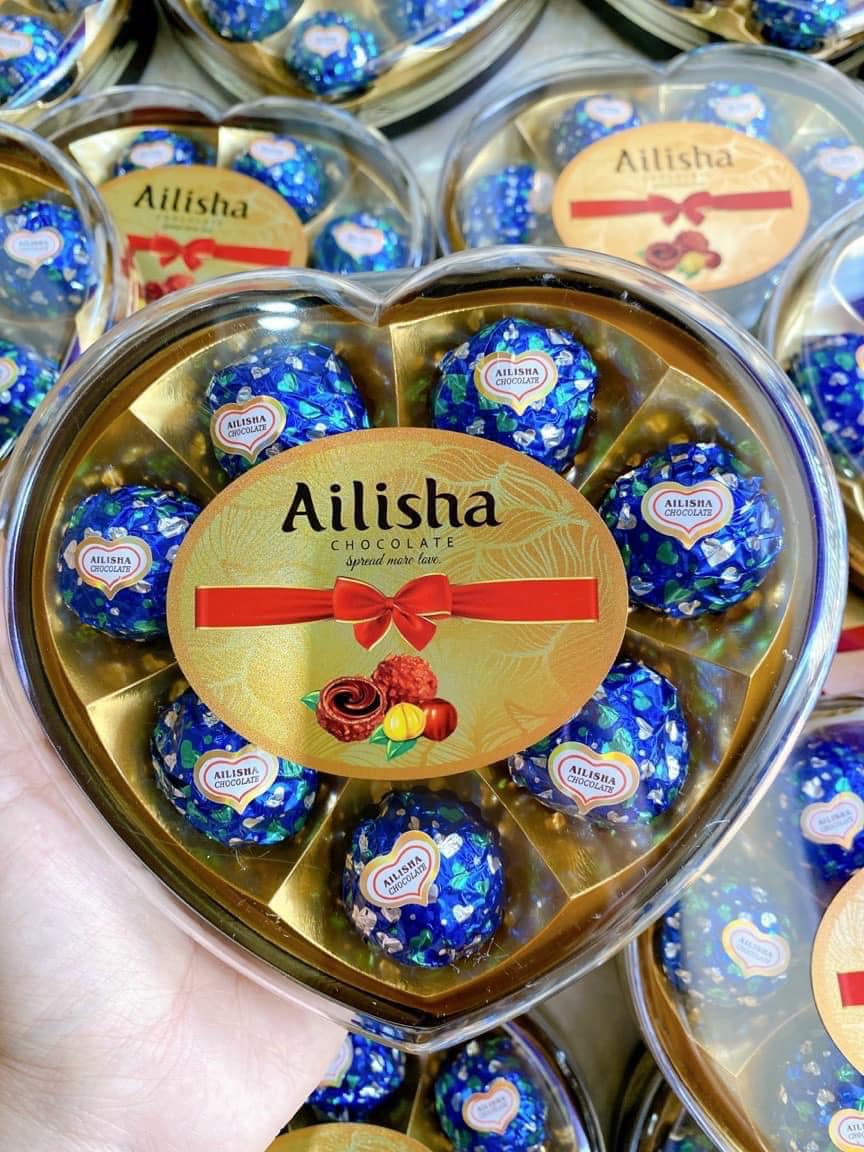 -Hương vị Chocolate AILISHA ngọt ngào đầy cảm hứng, cảm giác thơm dịu tan nhanh mát, mịn và hoạ tiết trang trí nhẹ nhàng, lãng mạn, Socola chắc chắn sẽ trở thành sự lựa chọn hàng đầu của các bạn trẻ Việt Nam trong những ngày tràn đầy ý nghĩa này hoặc trở thành quà tặng bất ngờ cho người ấy dù chỉ trong những ngày bình thường.