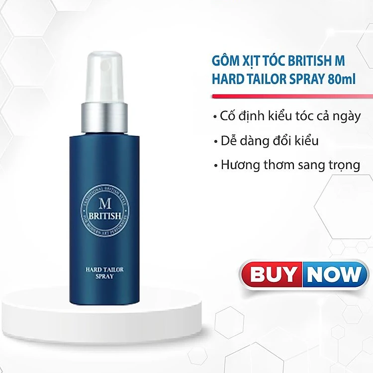 Keo xịt tóc tạo kiểu giữ nếp cứng cố định, không nặng tóc, đổi kiểu dễ dàng cho nam nữ BRITISH M Hard Tailor Spray 80ml