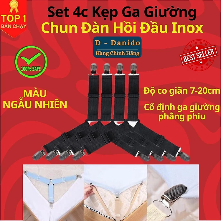 Kẹp ga trải giường chống xê dịch - Nẹp 4 góc cố định và giữ phẳng drap ga phủ giường D Danido (Giao mầu ngẫu nhiên)
