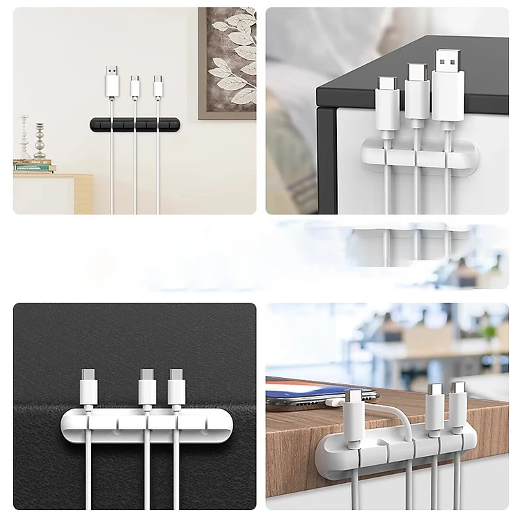 Kẹp giữ cố định dây cáp sạc điện thoại, laptop gọn gàng chống rối có sẵn keo tự dính dán tường, mặt bàn, taplo ô tô - HÀNG CHÍNH HÃNG