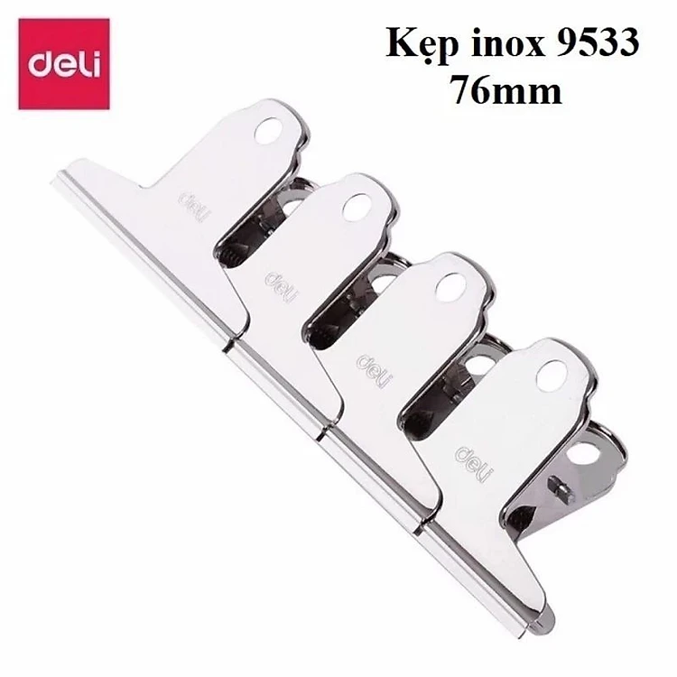 Kẹp inox Deli 9531 / 9532 / 9533 - Kẹp giấy kẹp tài liệu inox cỡ 76mm / 102mm / 145mm
