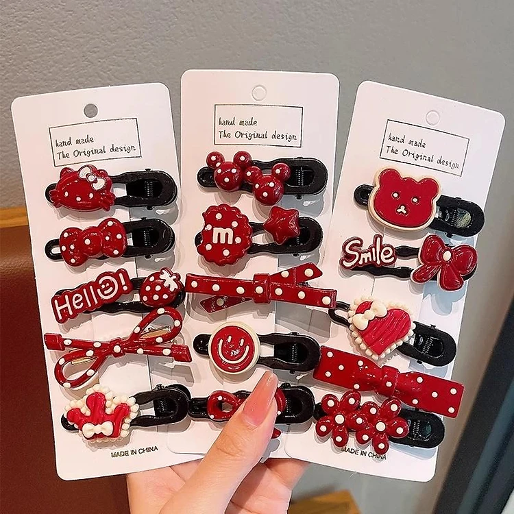 Kẹp Tóc 2024 Nơ Đỏ Năm Mới Gấu Bộ Nụ Cười