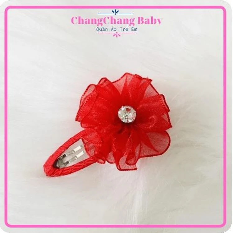 Kẹp tóc cho bé gái hình bông hoa màu đỏ nổi bật