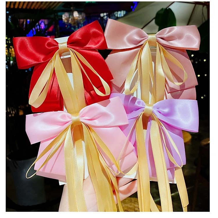 Kẹp tóc cho bé hình nơ ruy băng phong cách Hàn Quốc+ Tặng kèm 2 dây cột tóc, giao màu, mẫu ngẫu nhiên