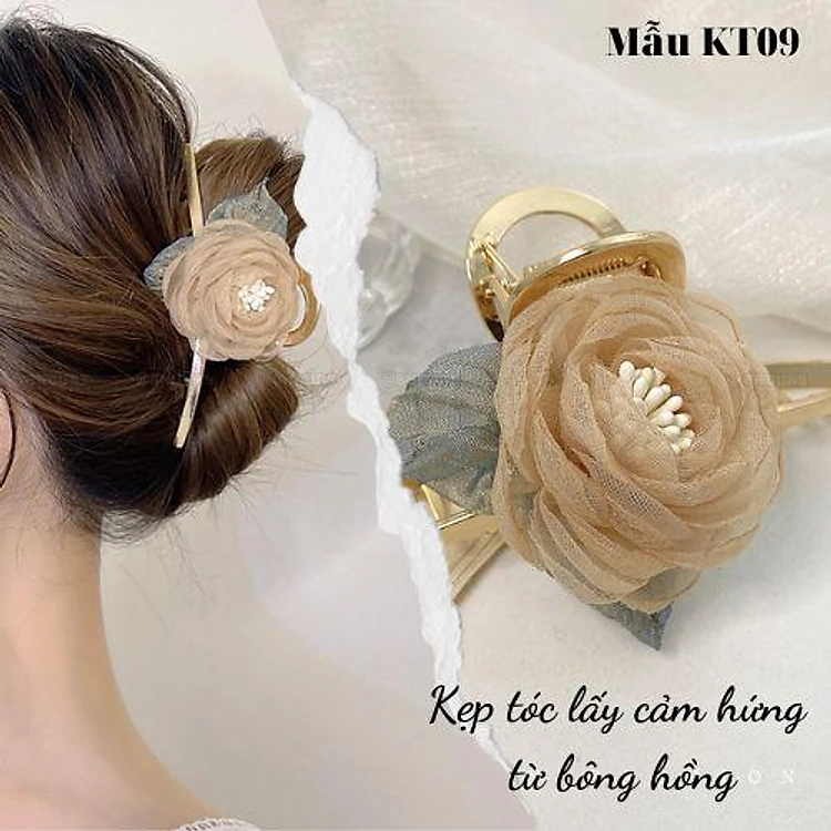 Kẹp tóc hàm cá mập hình bông hồng KT09 phong cách Hàn Quốc