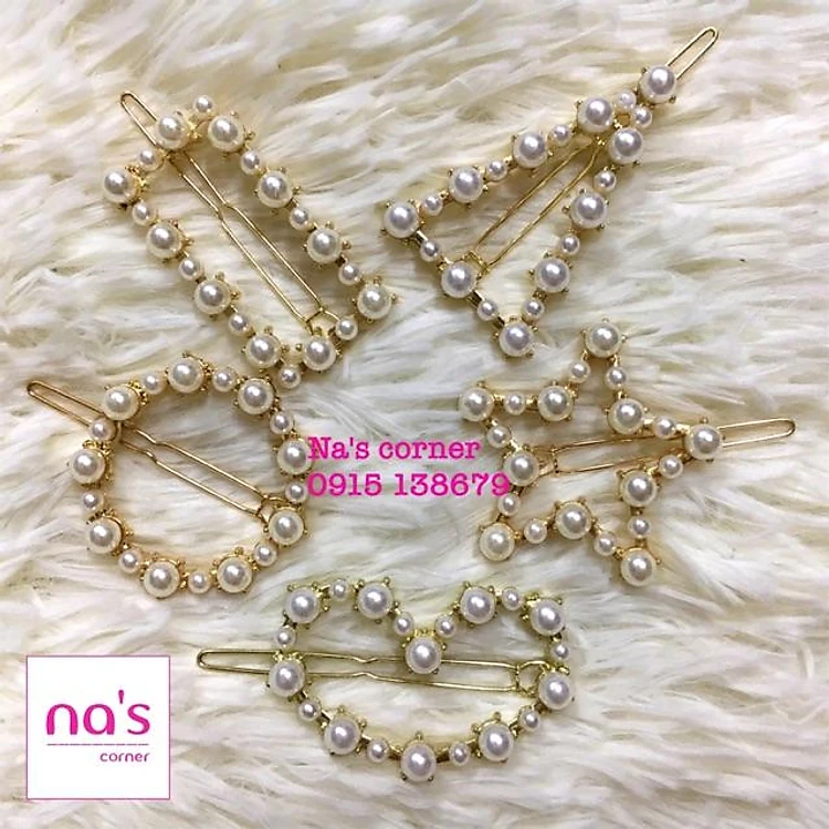 Kẹp tóc mái đính ngọc trai giả