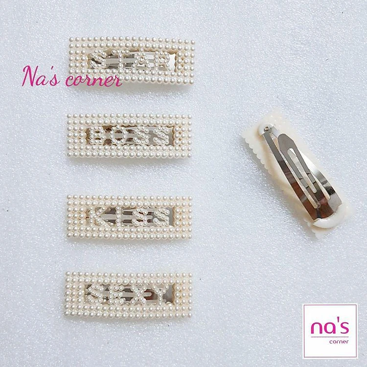 Kẹp tóc mái nhựa giả ngọc trai chữ Star Boss Kiss Sexy