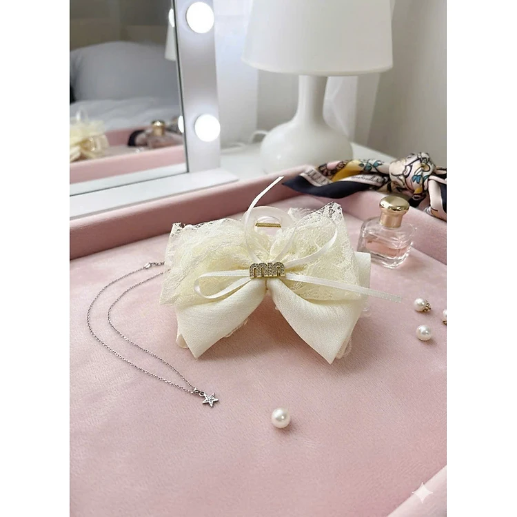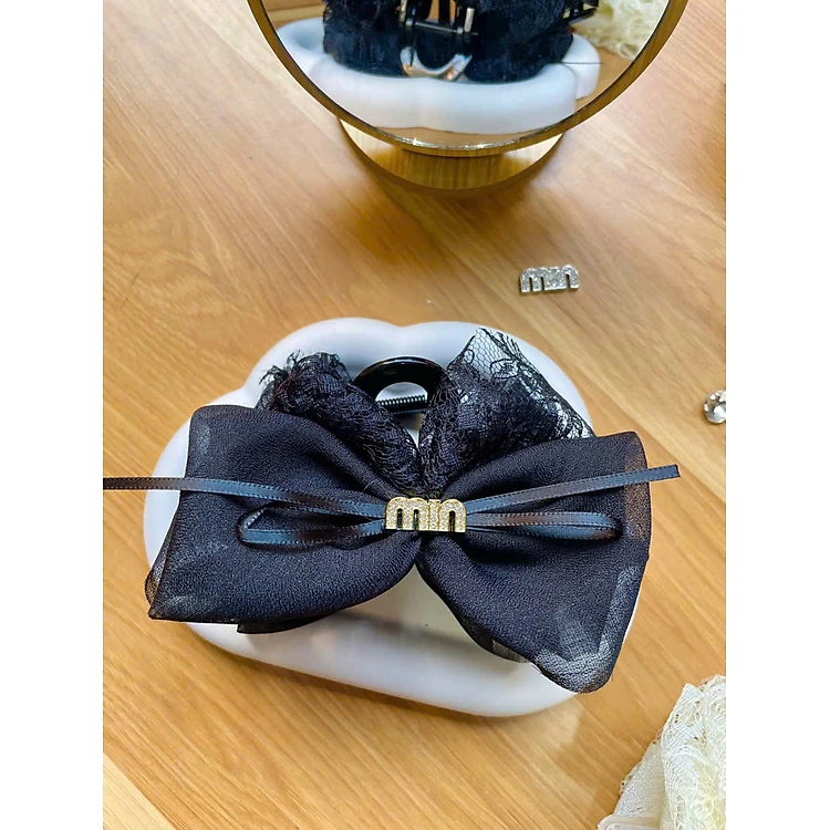 Kẹp Tóc Nơ Ren Cao Cấp Phong Cách Tiểu Thư Hàn Quốc, Kẹp Càng Cua Nơ Lớn Sang Trọng Dự Tiệc – 2 Màu Đen & Kem - HÀNG CHÍNH HÃNG MINIIN