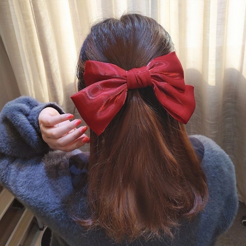 Kẹp tóc Hàn Quốc, kẹp tóc nơ bướm vải satin lấp lánh sang chảnh KT33