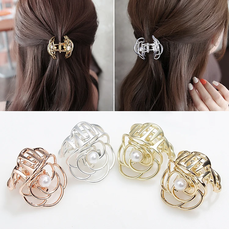 Kẹp tóc sau - hoa hồng cẩn ngọc - loại lớn