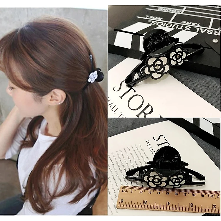 Kẹp tóc sau - kẹp tóc hoa hồng camellia đính đá dạng dài mẫu 2 hoa