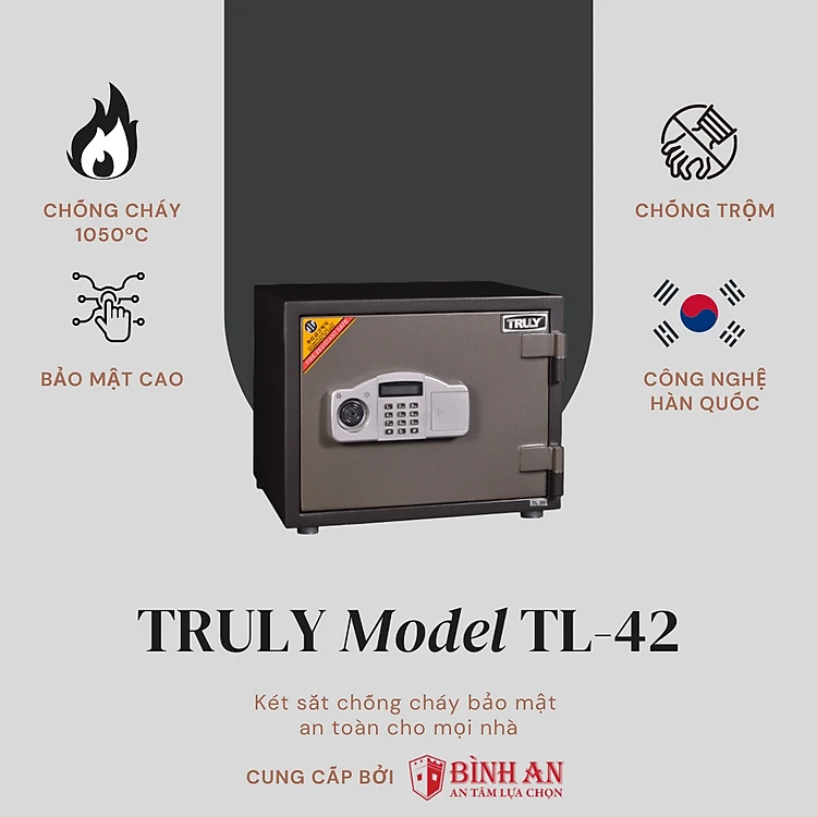 Két Sắt Chống Cháy Gia Đình TRULY TL-42 Chống Cháy, Chống Trộm Công Nghệ Hàn Quốc 75kg Bảo Hành 5 Năm - Hàng Chính Hãng