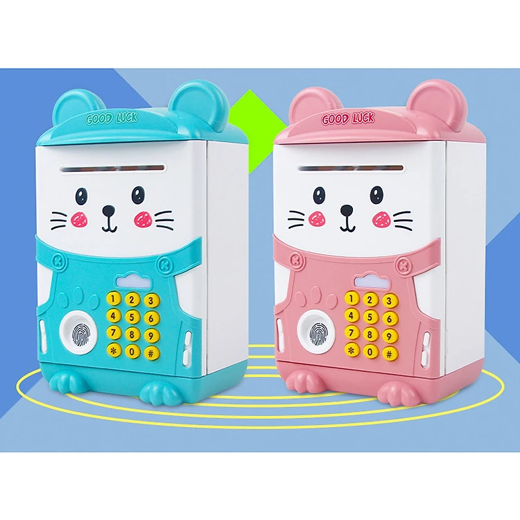 Két sắt mini có chế độ vân tay hình mèo dễ thương (cho bé tiết kiệm bảo quản tiền của bé)-giao màu ngẫu nhiên-kèm tặng giá đỡ điện thoại lúc sạc