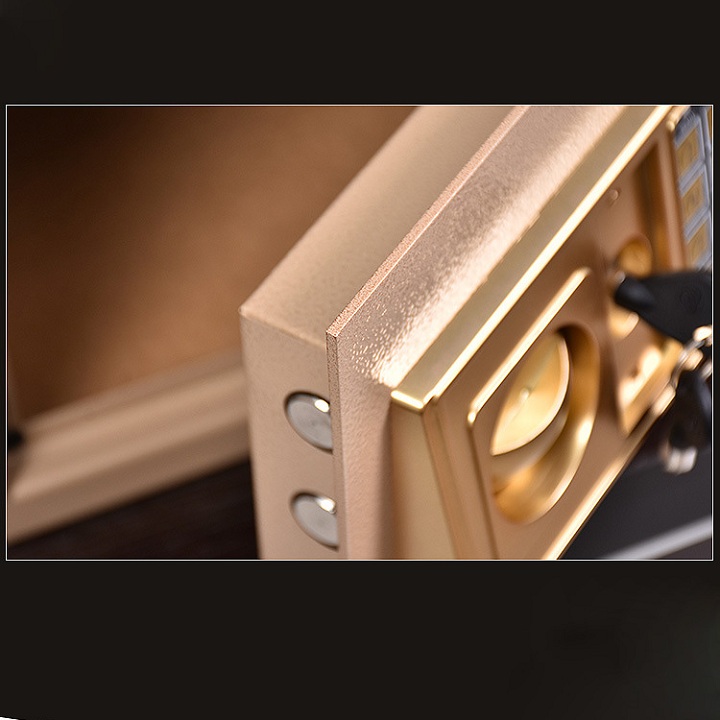 - Khung cửa sử dụng ống thép hình chữ U xung quanh , với công nghệ hàn điểm tự động cho độ bảo mật. Mạch khoá vàchi tiết bên trong khoá được che chắn cẩn thận giúp ngăn chặn“ai đó” muốn phá vỡ khoá két sắt mini VS2 từ bên ngoài.
