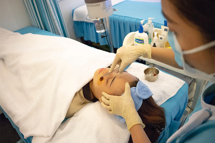 Bước 1: Bác sĩ chuyên khoa da liễu sẽ khám, soi da và tư vấn khách