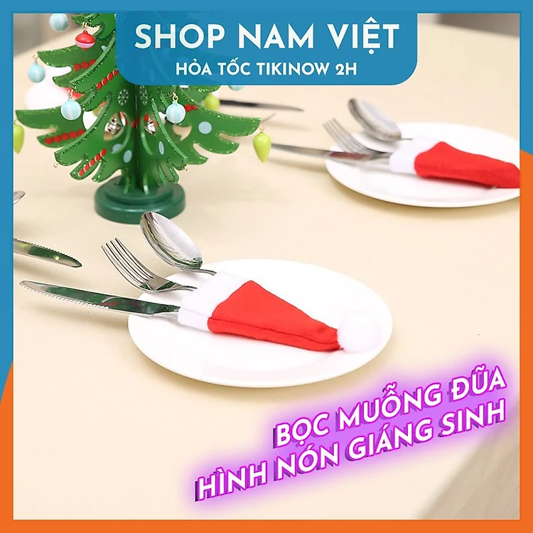 Khăn Bọc Muỗng Đũa Bàn Ăn Hình Nón Giáng Sinh