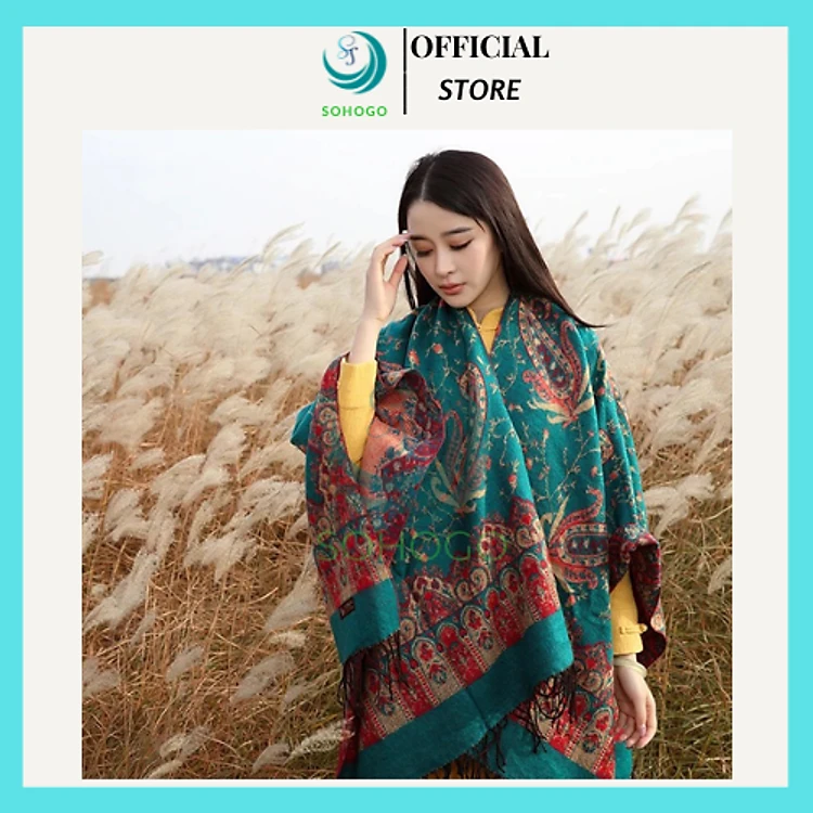 Khăn choàng/ Áo choàng phong cách Boho thổ cẩm nữ thu đông - Áo choàng len dạ dày