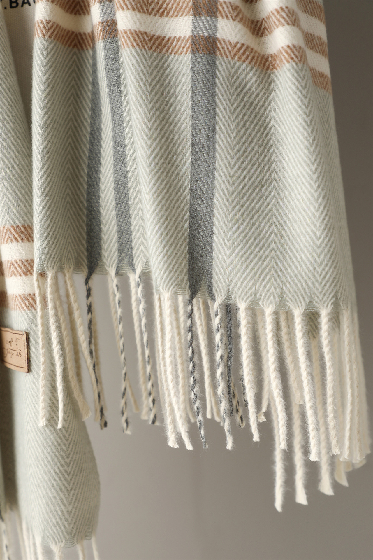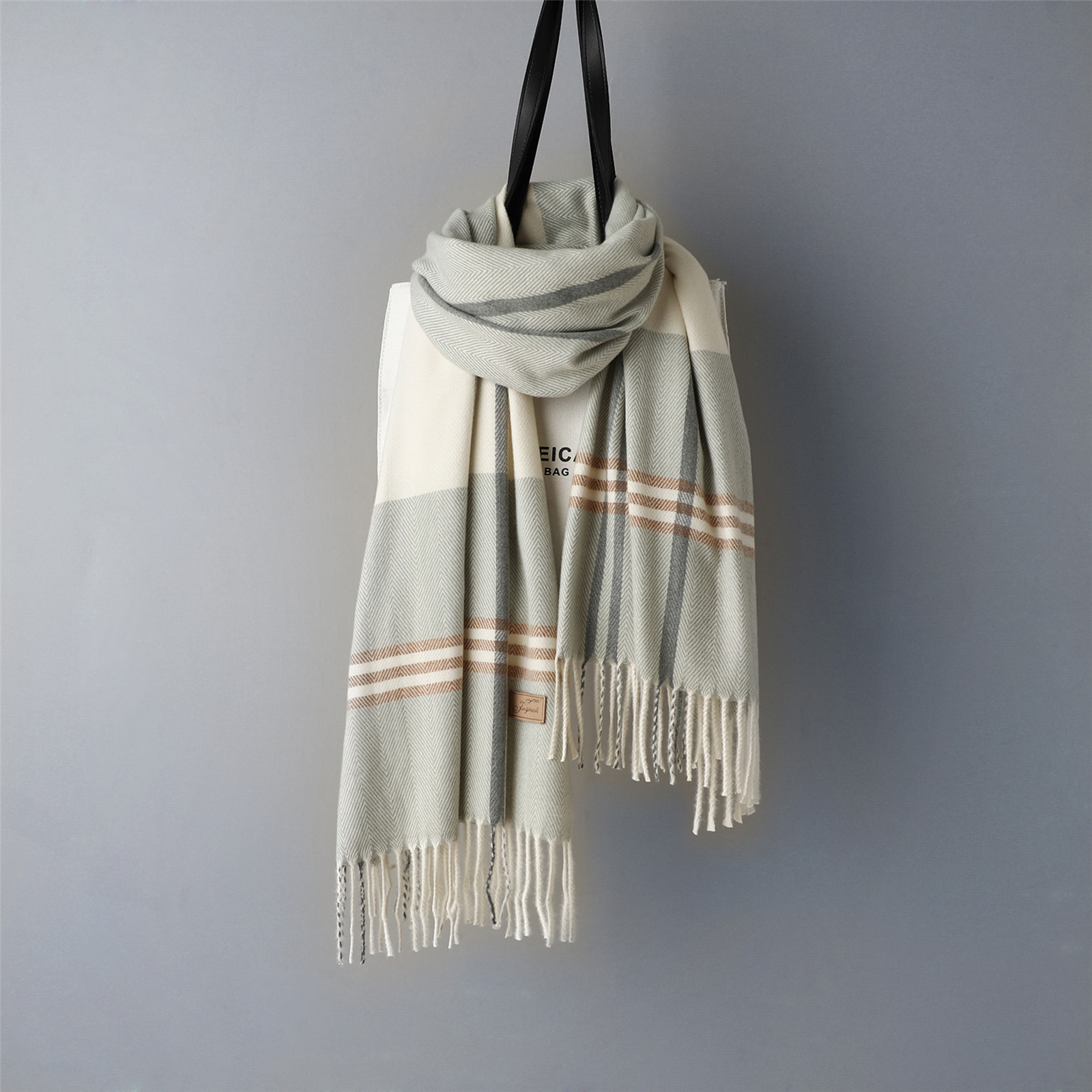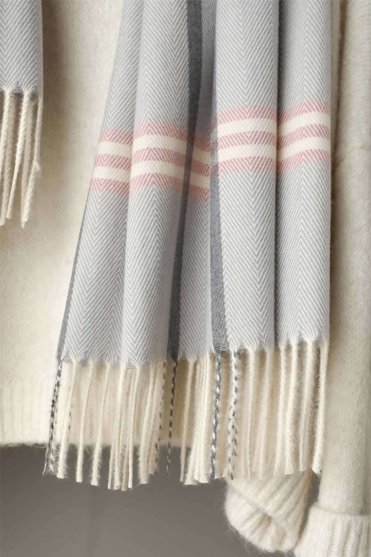 Khăn Choàng Cổ Dạ Len Kẻ Sọc Tua Rua Thời Trang Sang Trọng