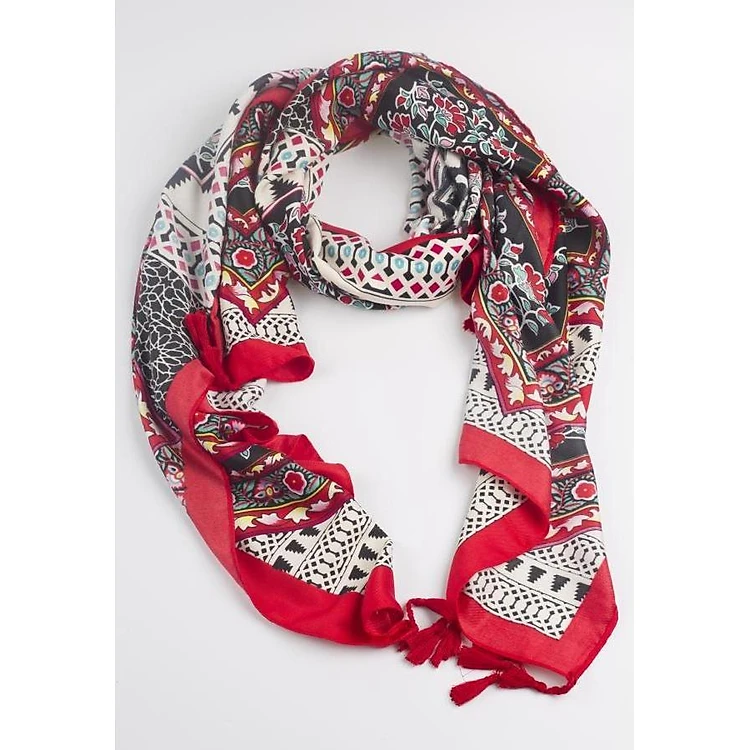Khăn Choàng Cổ Họa Tiết Thổ Cẩm Màu Đỏ, Đen - Cotton Viscose - 180x100cm - Mã KC040