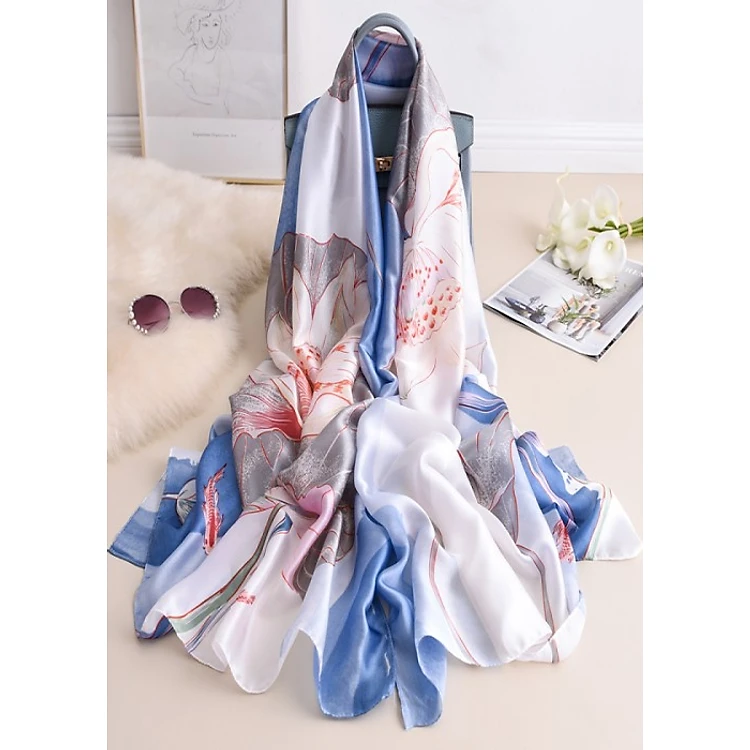 Khăn Choàng Cổ Lụa Tổng Hợp Họa Tiết Hoa Sen HN021