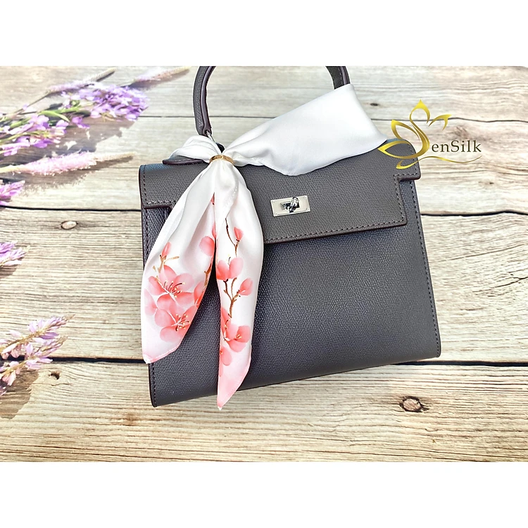 Khăn Cột Tóc Lụa Tơ Tằm Vẽ Tay Hoa Đào SenSilk 55x55cm, Phụ Kiện Lụa Cao Cấp - Quà Tặng Độc Đáo
