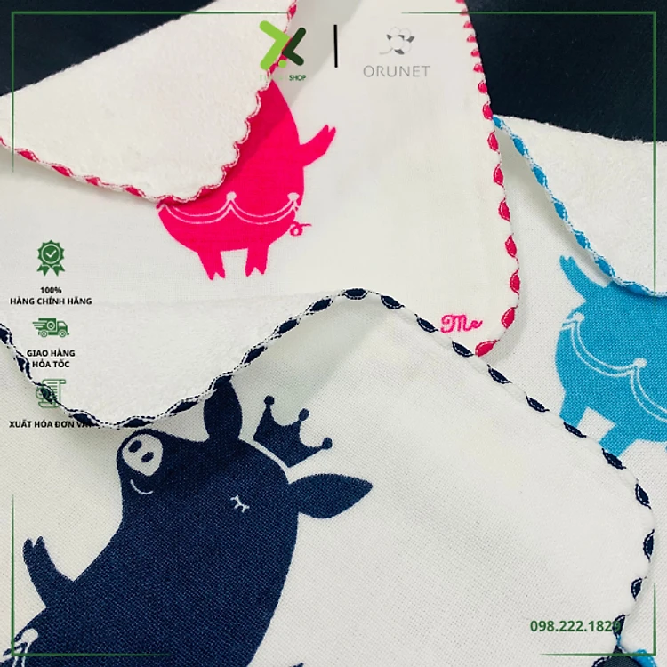 Khăn gạt em bé lau mặt họa tiết thương hiệu Orunet Nhật Bản - Orgenic Cotton HW0817 HW0818 HW0819
