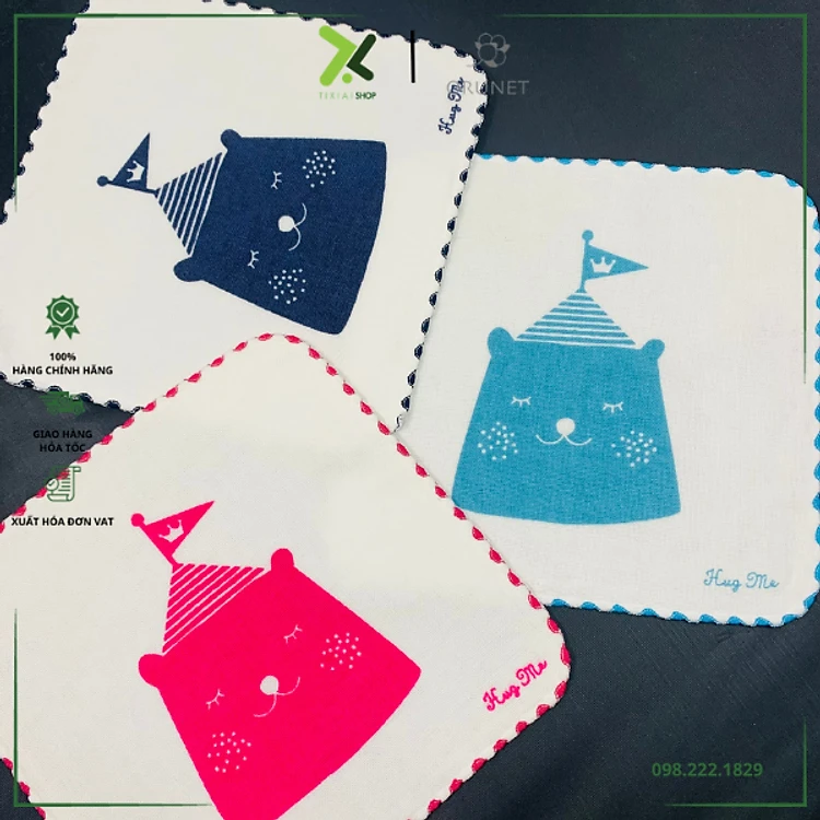 Khăn gạt em bé lau mặt họa tiết thương hiệu Orunet Nhật Bản - Orgenic Cotton HW0817 HW0818 HW0819