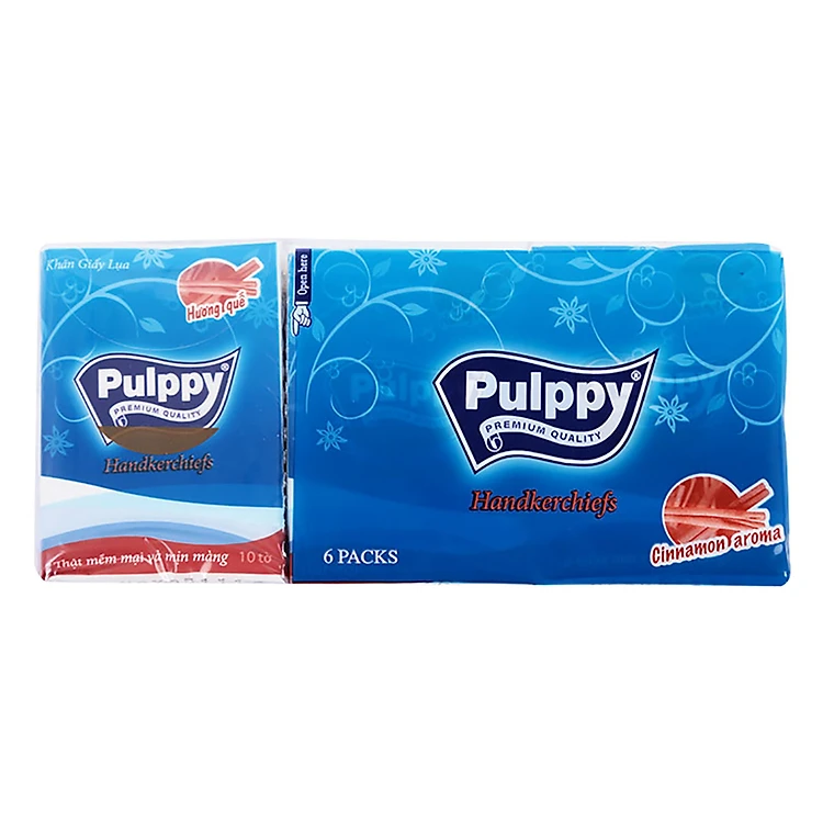- Khăn giấy lụa bỏ túi hương quế Pulppy đặc biệt dành cho làn da nhạy cảm bởi Pulppy được sản xuất từ bột giấy nguyên chất tốt nhất, trắng tự nhiên và không có hóa chất tẩy trắng gây độc hại.