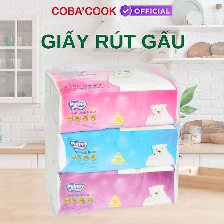 Khăn Giấy Rút Pulppy Polar Bear Bịch Khăn Giấy 180 Tờ 2 Lớp