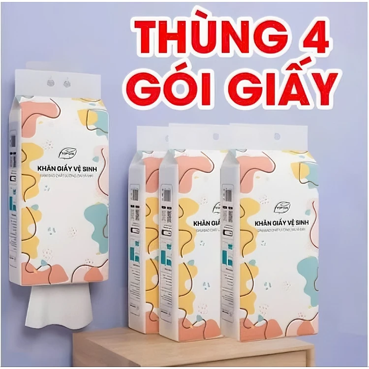 Khăn giấy treo tường 1280 tờ/4 lớp Topgia dạng rút tiện lợi cao cấp, tiết kiệm, an toàn kèm móc treo (Thùng 4 gói) 157x175cm
