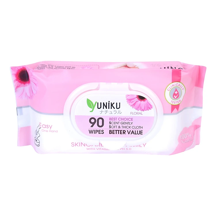 Khăn Giấy Ướt Cao Cấp Yuniku Maxcool 90 Tờ - Màu Hồng với công thức hoàn toàn đặc biệt dành riêng cho làn da nhạy cảm của bé, và vượt trội với hương liệu được chiết xuất từ 100% các tinh chất của tự nhiên như Trà Xanh, Aloe Vera và tinh chất của hoa Chamomile, đã khiến sản phẩm có tính chất giữ ẩm ưu việt, giúp cho làn da em bé luôn tươi mát và mềm mại.
