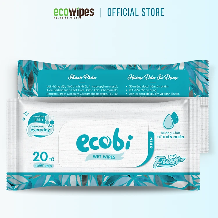 Khăn giấy ướt cho bé Ecobi không mùi không cồn không paraben an toàn cho làn da nhạy cảm của bé