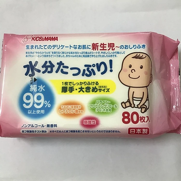 Mỗi tờ khăn giấy ướt chứa lượng nước tinh khiết lên đến 90% Chất lượng khăn ướt dầy, khó rách, độ ẩm cao. Sử dụng được cho trẻ sơ sinh và đặc biệt không gây kích ứng cho da của trẻ . Phù hợp cho mọi lứa tuổi . Sử dụng chất liệu mềm mại đem đến sự nhẹ nhàng trên làn da của trẻ.