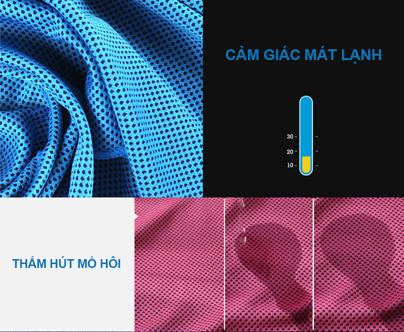 Trong quá trình vận động cơ thể con người tiết ra rất nhiều mồ hôi, không ngừng rơi vào mắt, trán, cổ và các cơ quan khác. Có thể gây ra nhiễm khuẩn hoặc gây cảm giác khó chịu. Sử dụng khăn lạnh chất liệu thoáng khí, mỏng nhẹ đeo như không đeo giúp nhanh chóng lau đi mồ hôi, loại bỏ cảm giác khó chịu.