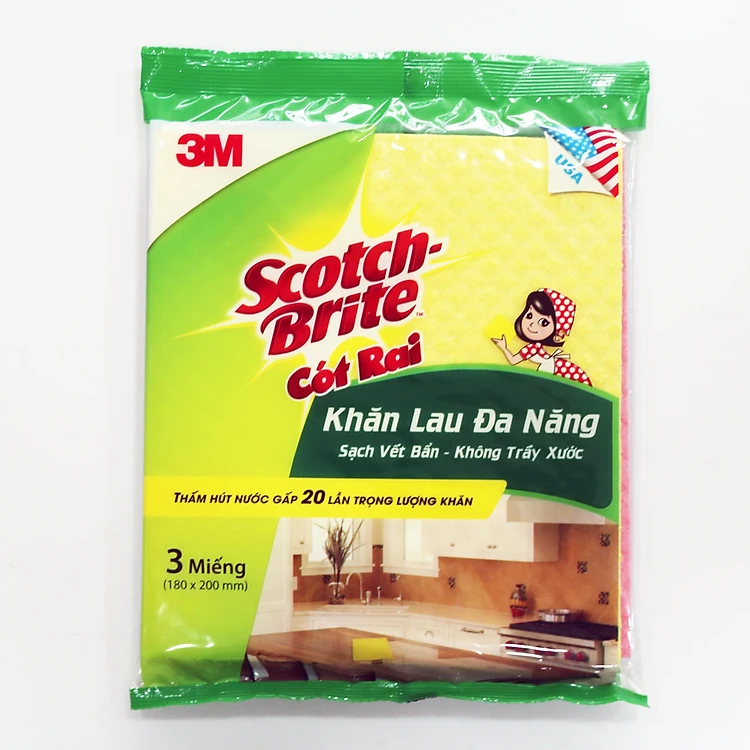 - Khăn lau đa năng Scotch-Brite thân thiên với môi trường, có khả năng tự hủy 100%.
