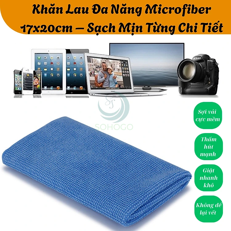 Khăn lau kính chống trầy- Khăn microfiber lau điện thoại 17x20cm- Khăn lau màn hình cao cấp- Khăn lau đa dụng siêu thấm- Khăn lau máy ảnh, kính mắt-Hàng nhập khẩu