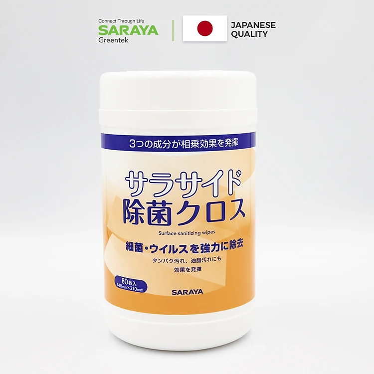 Khăn Lau SÁT KHUẨN BỀ MẶT SARAYA SARACIDE SANITIZING WIPES - Hộp 80 cái (Sử dụng trong Y TẾ và SINH HOẠT hằng ngày, Phân loại TTBYT: 421/190000031/PCBPL-BYT)