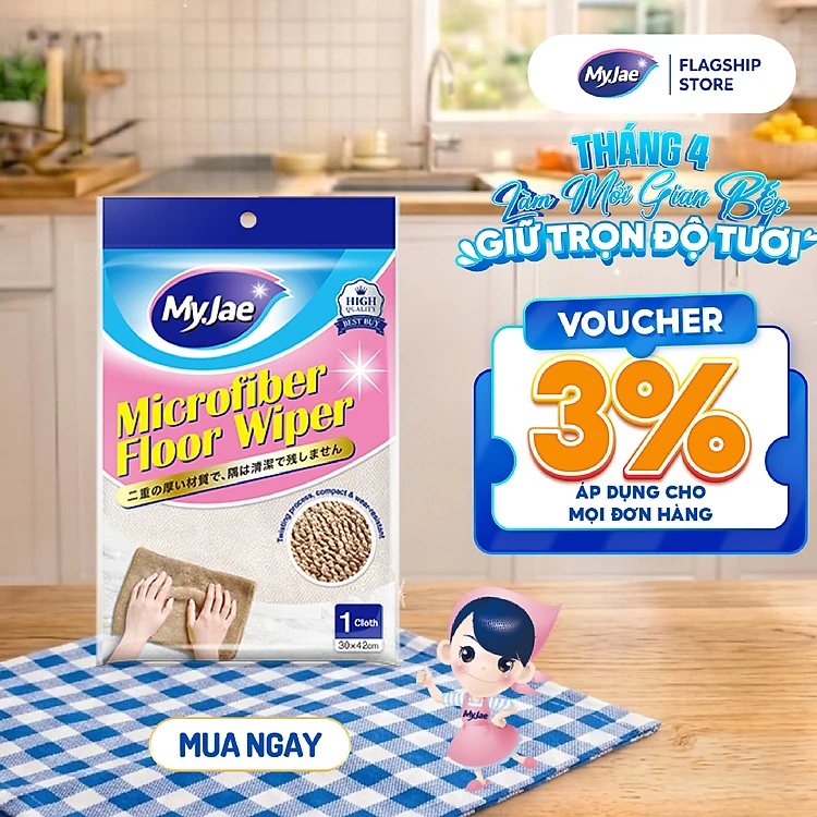 Khăn lau sàn sợi siêu mảnh MyJae tiện dụng đa năng thấm hút nước tốt, có móc treo 30cm x 42cm