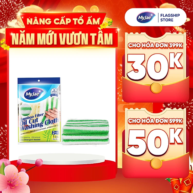 Khăn lau sợi tre MyJae lau bếp, lau tay, 2 mặt có móc treo 23cm x 18cm (3 Cái/Gói)