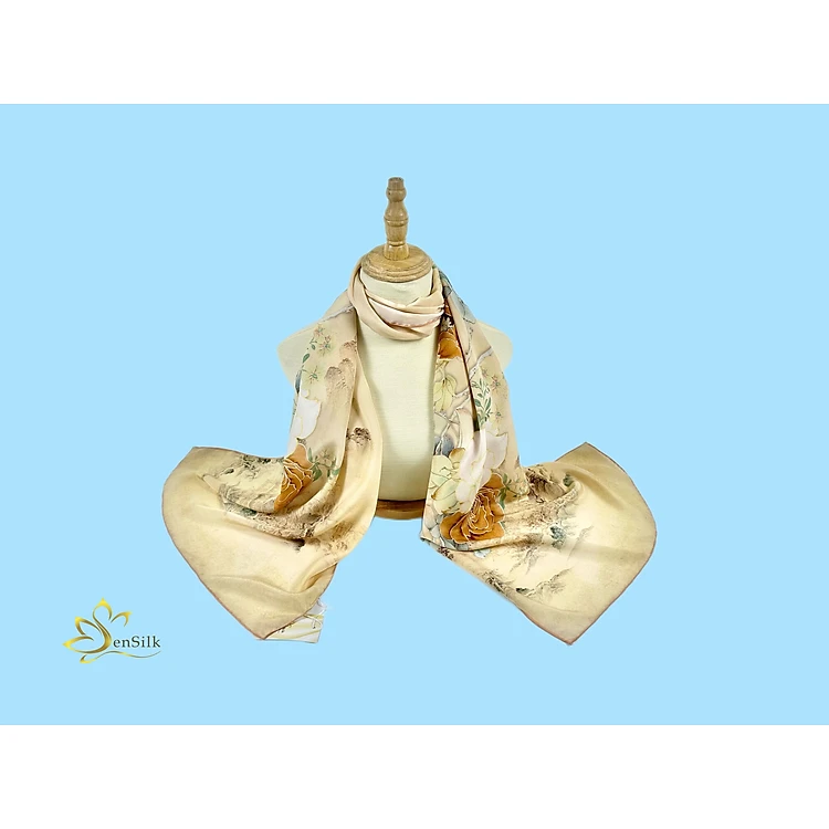 Khăn Lụa Cao Cấp in Kỹ Thuật Số Sen Silk KLDI02 Rose - Printed Silk Scarves - Quà Tặng Khách Nước Ngoài