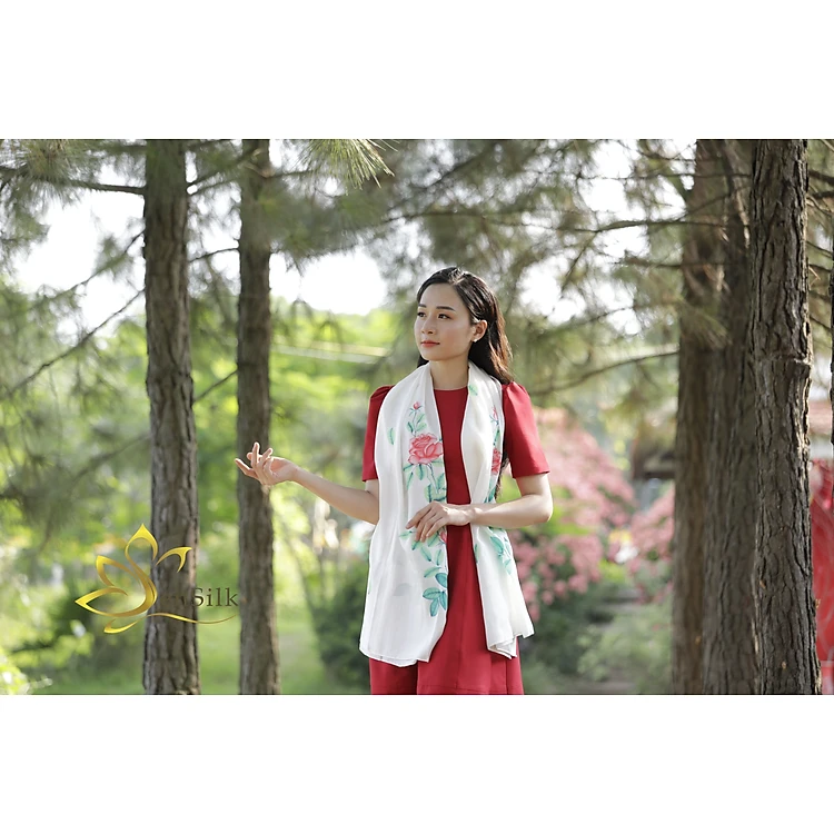 Khăn Lụa Cao Cấp Vẽ Tay Hoa Hồng SenSilk - Lụa Tơ Tằm Thuần Việt 160x55cm, Quà Tặng Tình Nhân, Phụ Kiện Thời Trang Cao Cấp Cho Nữ, Thủ Công Mỹ Nghệ Làng Nghề, Dệt Tay Truyền Thống