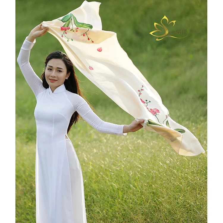 Khăn Lụa Cao Cấp Vẽ Tay Hoa Lan SenSilk Limited – Quà Tặng Doanh Nhân 200x55cm, Vietnam Hand Painted Silk