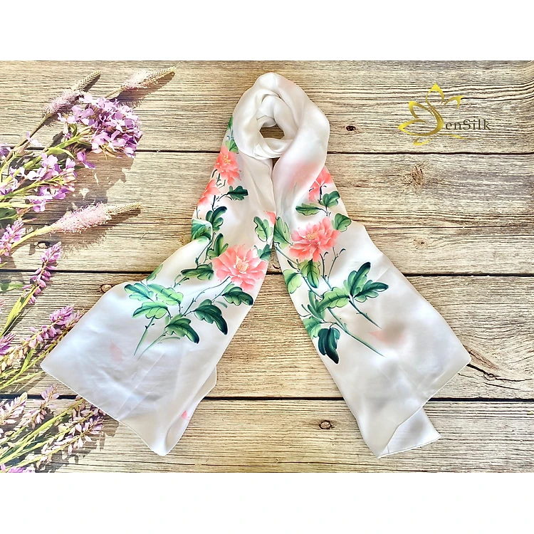 Khăn Lụa Cao Cấp Vẽ Tay SenSilk Limited 180x55cm - Quà Tặng Doanh Nghiệp, Lụa Tơ Tằm Bảo Lộc