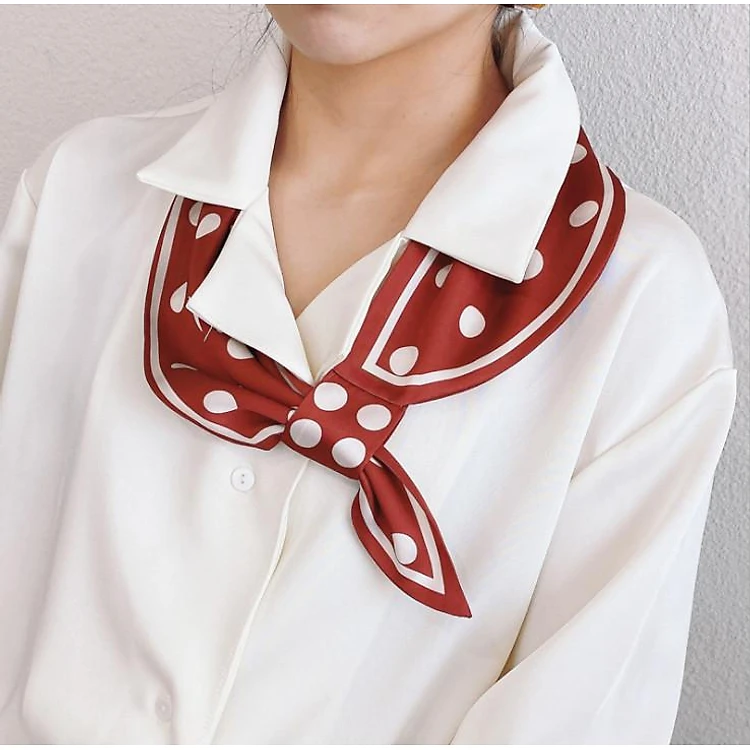 Khăn lụa đa năng thời trang Hàn Quốc dễ thương họa tiết chấm bi AKL22