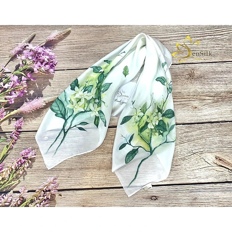 Khăn Lụa Đẹp Vẽ Hoa Bưởi SenSilk – Quà Lưu Niệm Ý Nghĩa, Khăn Lụa Vuông Cao Cấp
