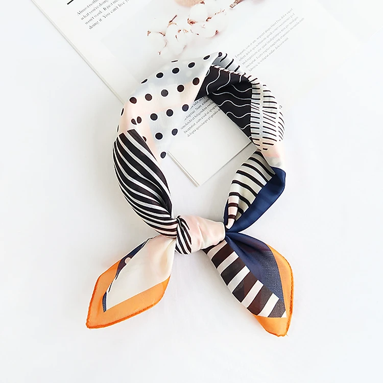 Khăn lụa vuông phong cách Nhật Bản phối kẻ chấm bi dễ thương AKL93