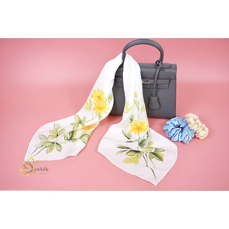 Khăn Lụa Vuông Vẽ Hoa Dã Quỳ – SenSilk Painting Silk