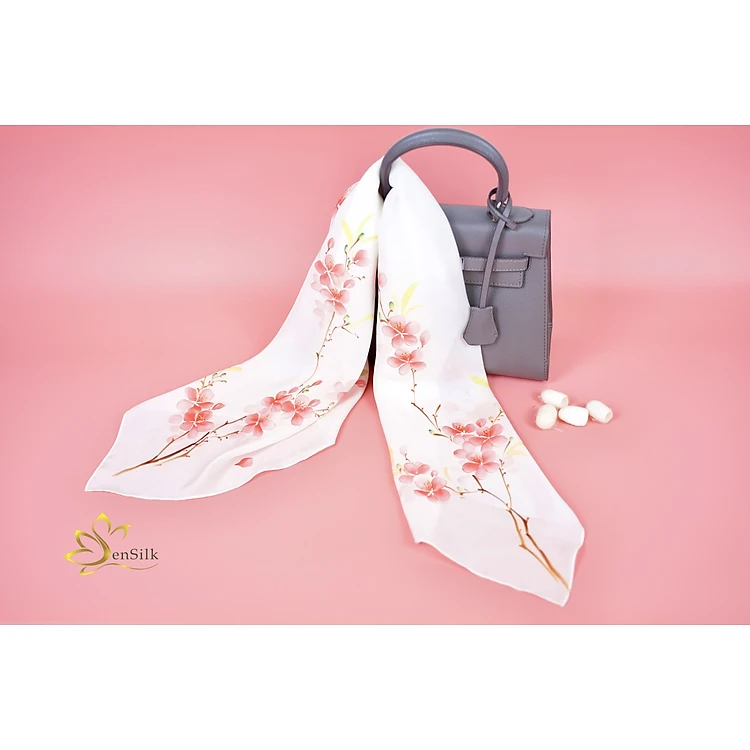 Khăn Lụa Vuông Vẽ Hoa Đào SenSilk – Quà Tết Cao Cấp