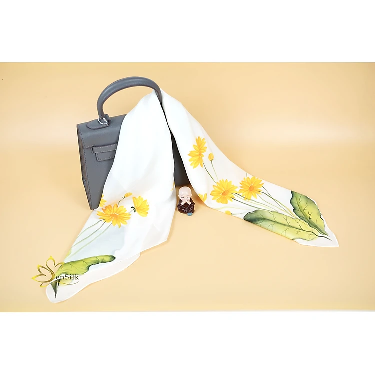 Khăn Lụa Vuông Vẽ Hoa Đồng Tiền SenSilk – Quà Tặng Doanh Nghiệp, Khăn Lụa Cao Cấp